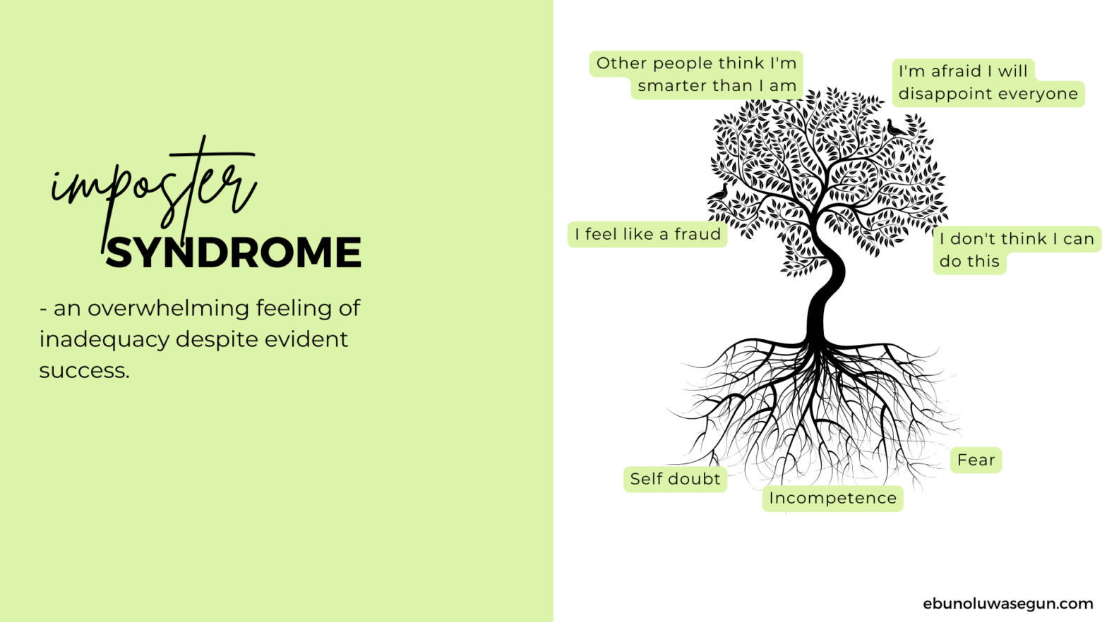 You could read this article, or watch the talk I gave on this. In One Way Or The Other, We Are All Imposters” – Ebun. Imposter syndrome – we hear so much about it and even encounter it in our personal and professional lives. But what exactly is it?Imposter syndrome by definition is an overwhelming… Continue reading The Best Imposter Ever