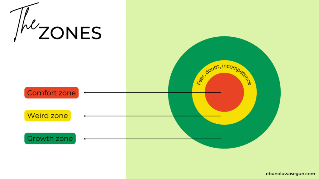 Fig 1: The comfort zone, the weird zone, and the growth zone